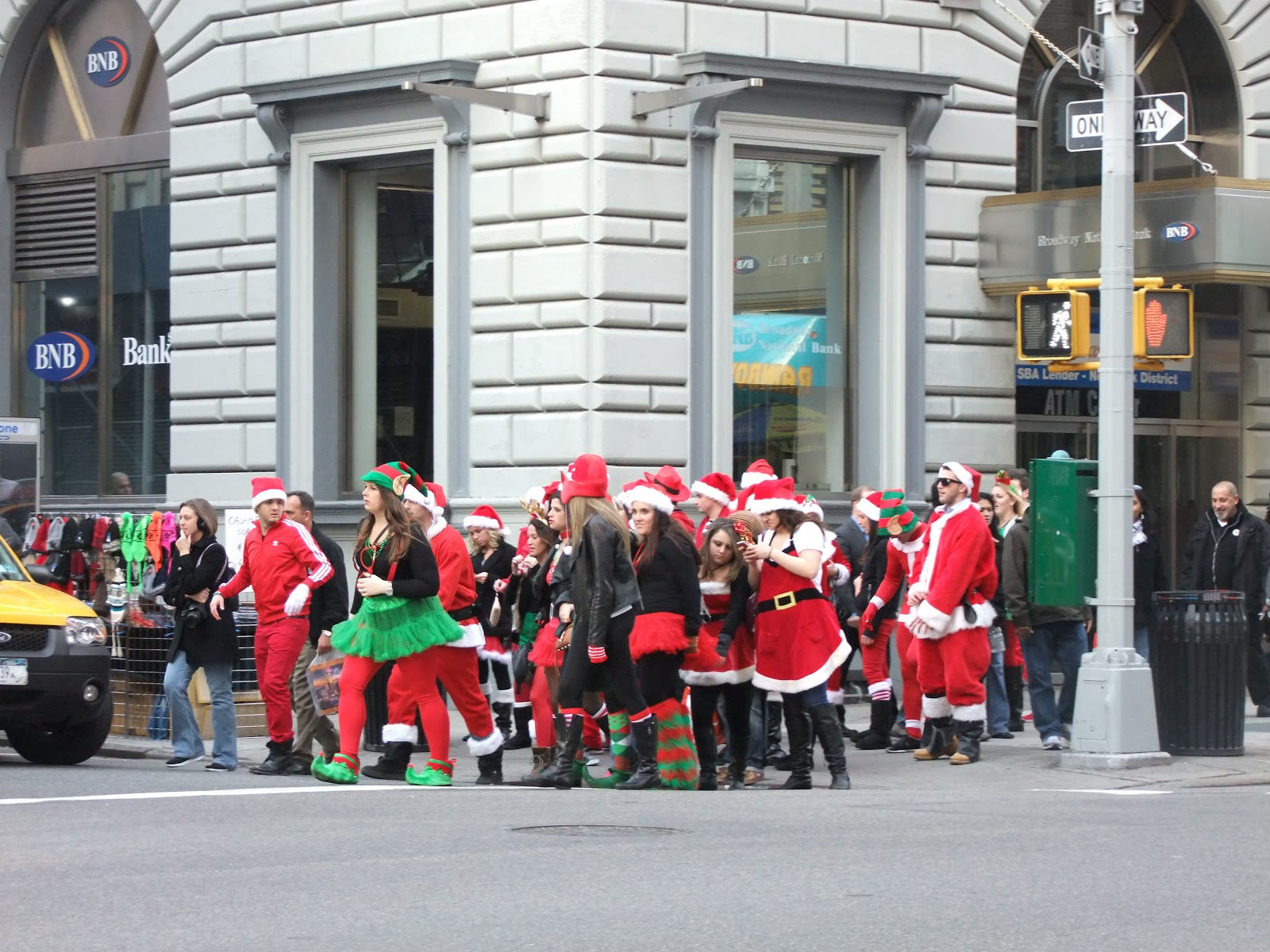We spotted our first Santa as soon as we stepped out into the street on our search for a good hearty breakfast (what was I thinking? every meal is "hearty" in this town!). Then we spotted a group of Santas, then a guy dressed as a pink rabbit, then some elves, then more Santas. At first we thought they could be headed for work, but quickly realised there were far too many - en-mass - for that to be the likely explanation. We learned later that it's a traditional Christmas time pub crawl - SantaCon - where everyone dressed as a Santa receives free drinks at participating bars. We wondered at some of the queues, who would bother ? but they did.